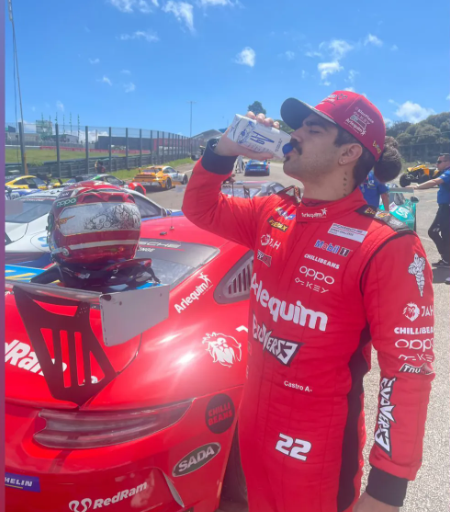 No dia anterior, Caio Castro postou fotos no autódromo e a namorada Daiane de Paula também compartilhou uma imagem desejando boa sorte para o ator.